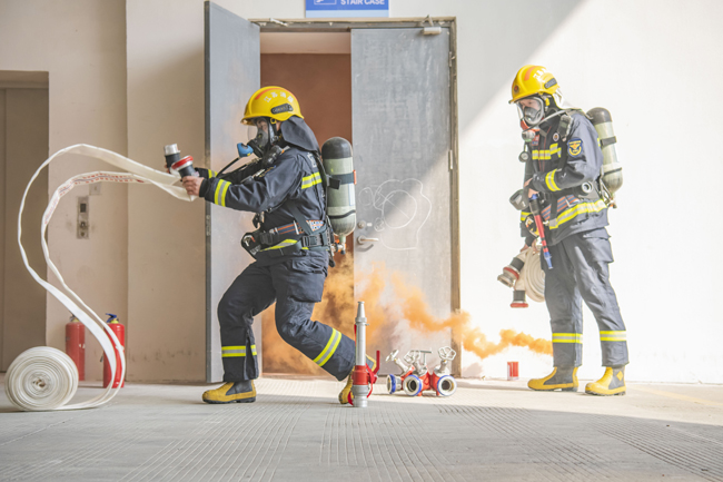 此次演練完全按照“真實(shí)模擬火場、現(xiàn)場領(lǐng)受任務(wù)、無預(yù)案戰(zhàn)斗展開”模式進(jìn)行,災(zāi)情假設(shè)為B10二層服裝加工企業(yè)起火,該企業(yè)立即啟動(dòng)自救預(yù)案并撥打消防報(bào)警電話。園區(qū)消防應(yīng)急救援大隊(duì)接警后,一次性調(diào)派2輛消防車11名消防戰(zhàn)斗員趕赴處置,演練過程中按照救人第一的指導(dǎo)思想,科學(xué)施救,內(nèi)攻滅火、內(nèi)攻搜救、外圍控火、緊急撤離等技戰(zhàn)術(shù)措施控制火勢,消滅火災(zāi)。