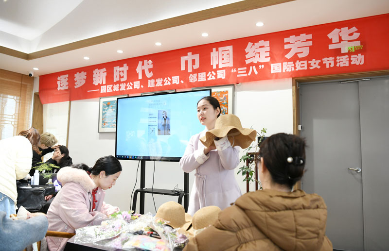 在手工制作環(huán)節(jié),女職工們化身“匠心設計師”,運用絲帶、花草等材料精心制作專屬禮帽。現場學會運用各自的創(chuàng)意巧思,呈現出風格各異的作品。
