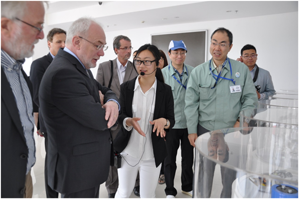 在尼吉康公司,南出智嗣董事長仔細為代表團介紹了企業(yè)發(fā)展歷史、產(chǎn)品性能等情況,并饒有興趣地交流起各自的工作、生活。日語、德語、英語、中文夾雜在一起,加上雙方豐富的肢體語言,熱烈不已。南出董事長說,很享受在宿遷的工作、生活,每天在園區(qū)都可以品嘗到可口的日本料理,周末可以到市區(qū)品嘗星巴克,味道很不錯。他還熱情邀請羅特先生一起品嘗。羅特對尼吉康公司的熱情接待表示感謝,他表示,此次園區(qū)之行雖然時間短暫,但給他留下了尤為深刻的印象,期望南出董事長等到德國做客。