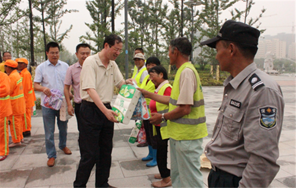 園區(qū)城管局有關(guān)負(fù)責(zé)人陪同慰問,并為環(huán)衛(wèi)工人分發(fā)了防暑降溫用品。