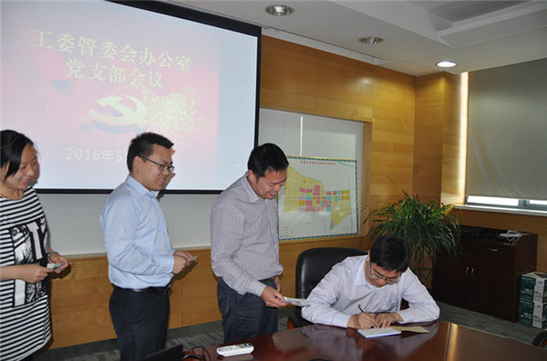 5月20日是園區(qū)工委管委會(huì)辦公室黨支部的黨員活動(dòng)日。活動(dòng)當(dāng)天,黨支部全體黨員按照?qǐng)@區(qū)“兩學(xué)一做”學(xué)習(xí)教育部署開(kāi)展集中學(xué)習(xí)。